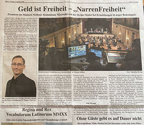 Laut Allgemeinverfügung des Landkreises Alzey-Worms zur Anordnung notwendiger, weiterer Schutzmaßnahmen aufgrund der steigenden SARS-CoV-2-Infektionenin Landkreis Alzey-Worms vom 16.10.2020 sind nur noch Veranstaltungen bis 75 Personen erlaubt. Das ist die Anzahl der Mitwirkenden, daher wäre kein Publikum mehr zulässig. Dies bedauern wir sehr.